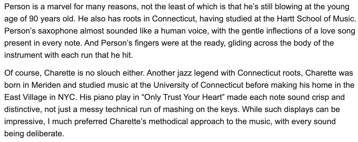 Great Review of Hartford show with Houston Person, July 7, 2025