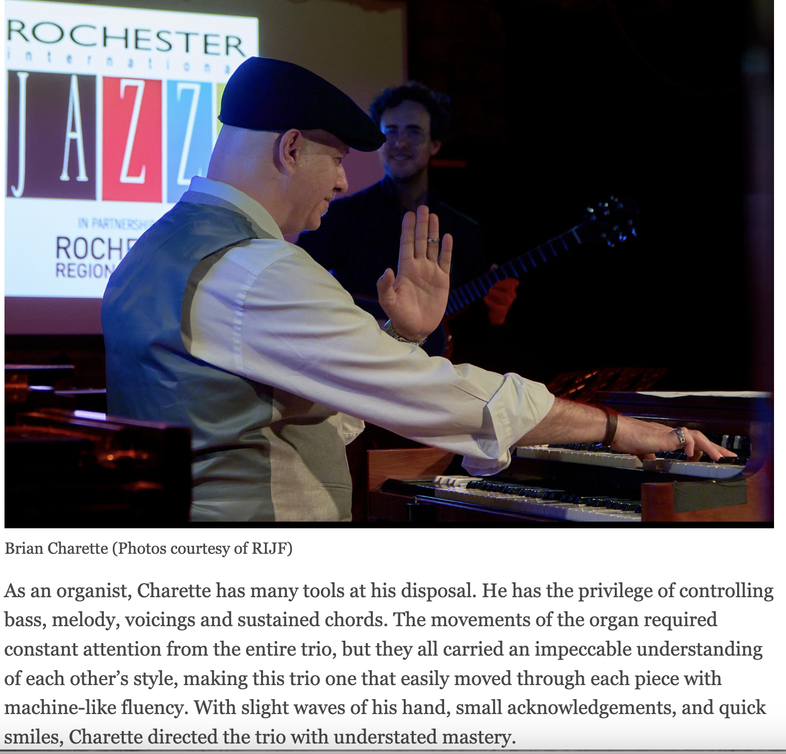 This year, Charette has been playing very successful engagements in NYC, Los Angeles, Detroit, Cleveland, New Orleans, Spain, Indonesia, Czech Republic and Germany. He also just placed 2nd in the 2013 Downbeat Critic's Poll for "Rising Star: Organ" for the second year in a row.